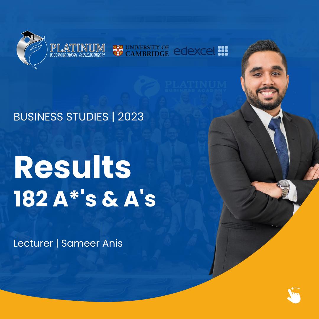 Cambridge OL, AS, AL, Edexcel OL, AS & AL Business Studies Demo video by Sir Sameer Anis https://www.youtube.com/watch?v=OxAjsUSqeN8